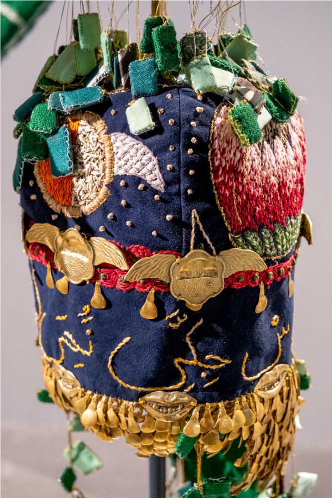 Materials: Felt embroidered with silk, linen, silk thread, silk velvet, Brass
