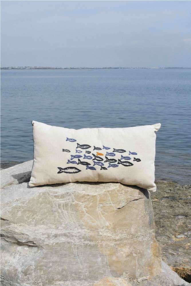 A PILLOW AND A FLOCK OF FISH