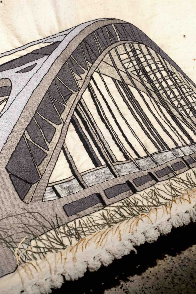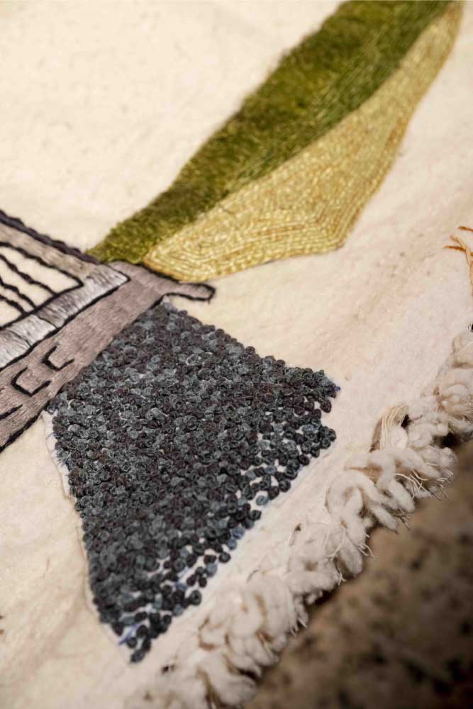 Based on Ali Tnanni’s drawings, an embroidered wool blanket was